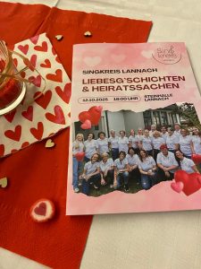 „Liebesgschichten und Heiratssachen“ lautete das Motto unseres diesjährigen Konzertes. Mit dabei waren viele bekannte und beliebte Lieder wie „Fernando“, „Can you feel the love tonight“, „Cordula Grün“, 1000 und 1 Nacht“, „Hit the Road, Jack“ und viele mehr. Neben den Chornummern sorgte auch der eine oder andere Solo- und Duo-Auftritt unserer Sängerinnen und Sänger für Begeisterung in der fast ausverkauften Steinhalle Lannach.